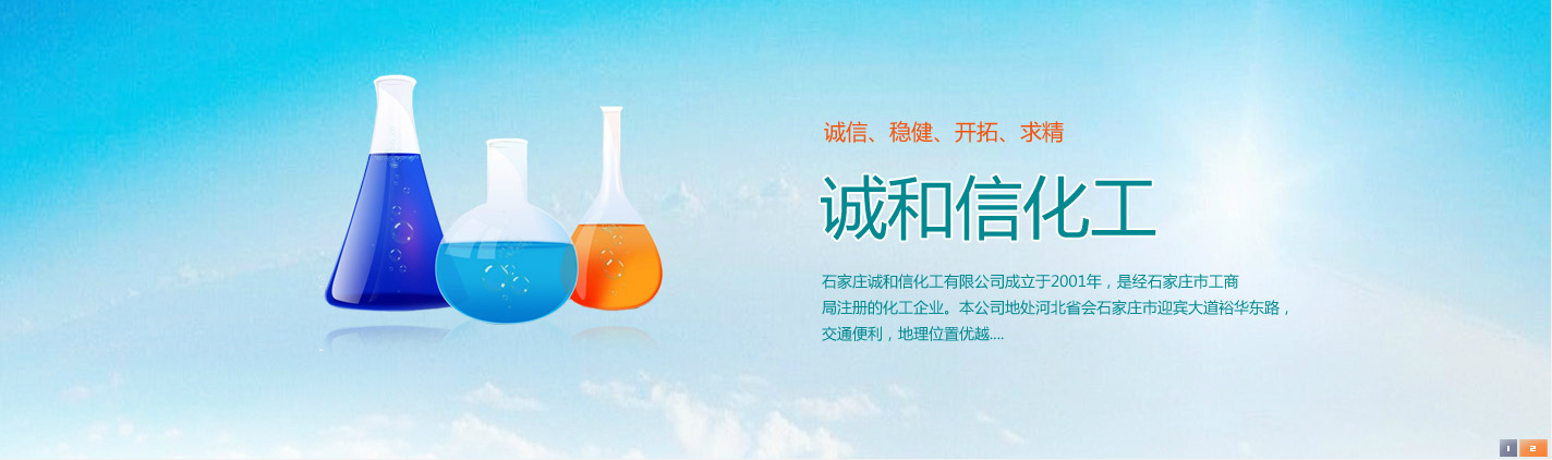石家莊誠和信化工有限公司成立于2001年,是經(jīng)石家莊市工商 局注冊的化工企業(yè)。本公司地處河 北省會石家莊市迎賓大道裕華東路 ,交通便利,地理位置優(yōu)越。公司 主要產(chǎn)品....詳細>>